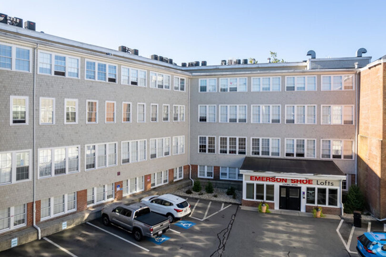 Emerson Shoe Lofts in Rockland, MA offers a modern one-bedroom, one-bath apartment designed for comfortable living. The building includes an indoor pool, fitness center, and a recreation room for leisure and activities, plus a resident library for quiet reading. Residents enjoy free common-area Wi‑Fi, ButterflyMX intercom access, and Parcel Pending lockers for secure deliveries. Parking options include free outdoor spaces and a parking garage. Available in early April. Call today for your private tour of our beautiful community!